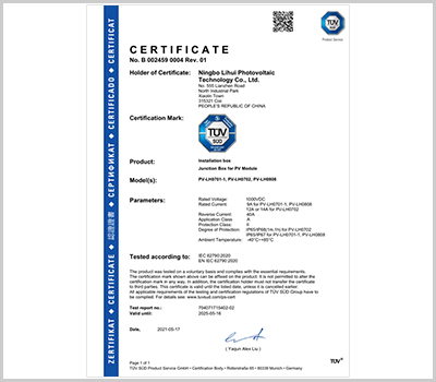 寧波市麗輝光伏科技有限公司成立于2010年,是一家專業(yè)從事太陽能光伏接線盒、連接器、光伏線束等周邊產(chǎn)品研發(fā)、設(shè)計(jì)、銷售的企業(yè)。公司座落于中國杭州灣南岸對外經(jīng)濟(jì)開發(fā)區(qū)的新興城市-慈溪市,產(chǎn)品通過TUV等認(rèn)證,企業(yè)通過ISO9001等管理體系認(rèn)證。現(xiàn)已形成多種系列光伏組件接線盒供應(yīng)能力,目前日產(chǎn)大組件光伏接線盒3萬套、小組件光伏接線盒6萬套。